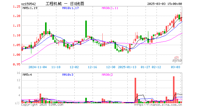 3月3日工程机械ETF(159542)份额减少50.00万份,最新份额809.28万份,最新规模964.51万元