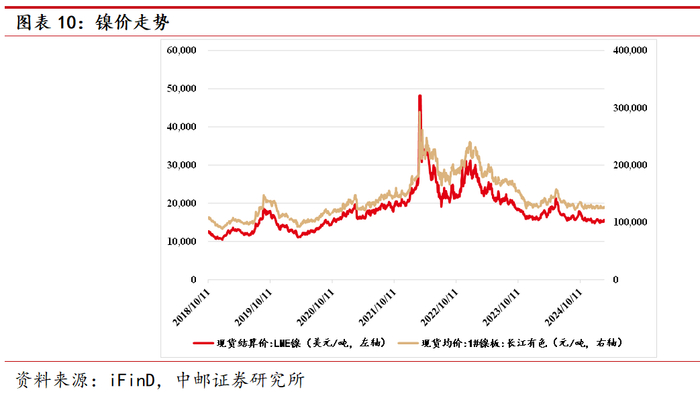 镍价跟踪:2月28日,伦敦金属交易所金属镍现货结算价格15460美元/吨,较上周末价格上涨1.05%;长江有色市场镍板现货均价127200元/吨,较上周末价格上涨0.79%。