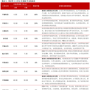 船舶板块上市公司业绩高增长,船舶行业高景气。船舶板块上市公司中,中船防务、中国重工、中国动力和中国船舶等2024年业绩高速增长,业绩增速中枢分别为680%、259%、65%、23%。中船防务、中国动力、中国船舶等在2024年业绩预告中均表示“船舶行业保持良好态势”,相关公司订单结构优化,体现船舶行业高景气。