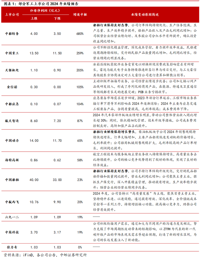 证券研究报告《87家军工上市公司披露2024年业绩情况,24家业绩正增长》