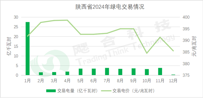 2024年绿电交易电量54.28亿千瓦时,成交均价393.00元/兆瓦时。