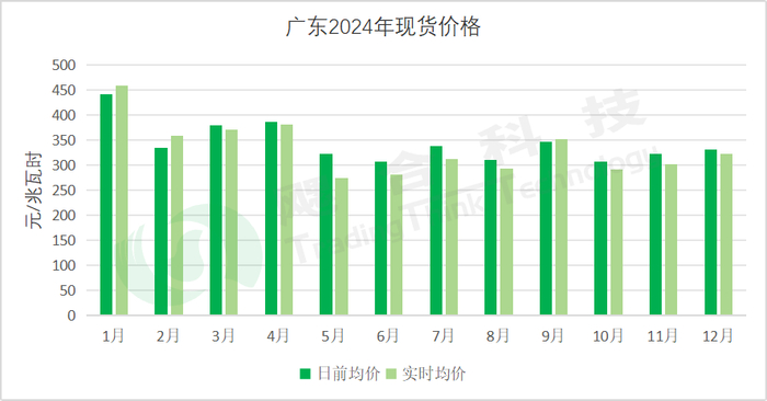 2024年广东发电侧日前均价为344元/兆瓦时,实时均价为333.37元/兆瓦时。