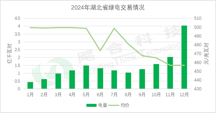 湖北省2024年常态化开展绿证交易,继续全面放开跨省跨区绿电交易,按中长期交易分时段带曲线开展。1-12月绿色电力交易电量共17.14亿千瓦时,结算均价475.59元/兆瓦时。