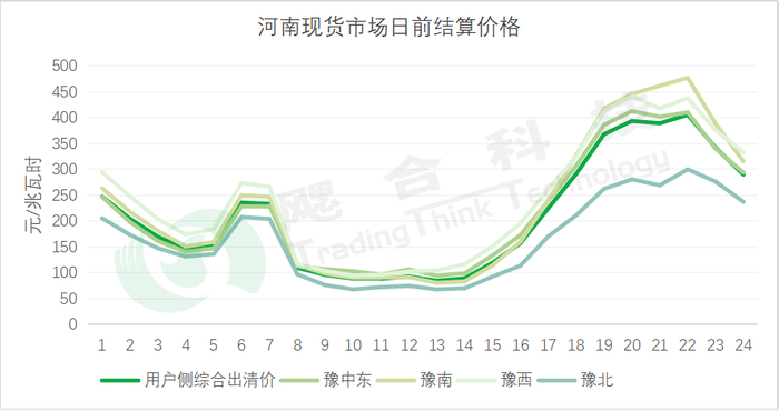 现货试运行期间,发电侧日前、实时市场电价采用分区电价(分豫北、豫西、 豫中东、豫南四个价区),用户侧日前、实时市场电价采用全网发电侧加权平均电价结算。