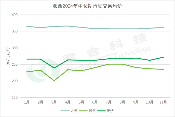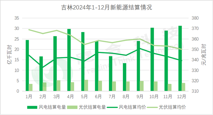 2024年1-12月,风电结算均价为338.46元/兆瓦时;光伏结算均价344.88元/兆瓦时。