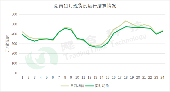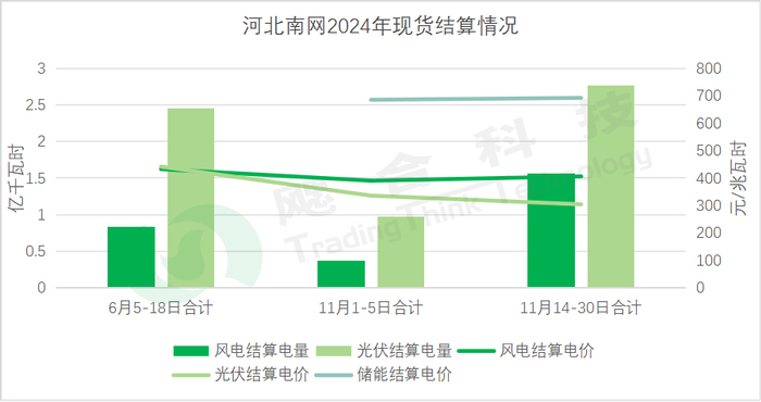 冀南自2024年5月27日起开展现货连续调电试运行,6月5-18日、11月1-5日和14-30日开展现货结算。在11月现货结算期间开展两次集中竞价交易,受现货结算影响,11月月度集中竞价价格稍低。