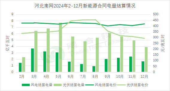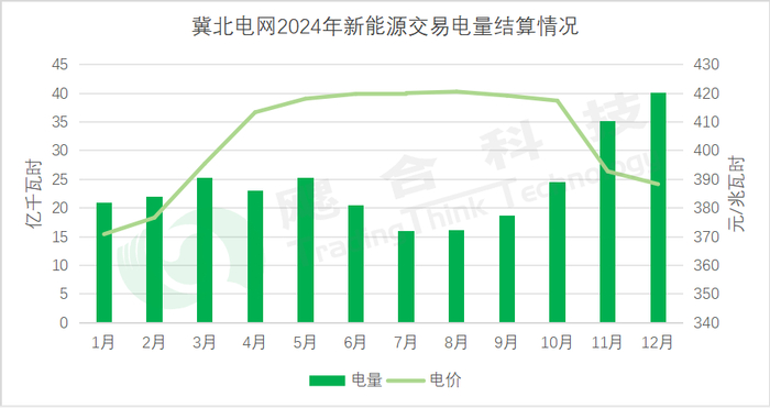 冀北电网2024年未开展现货,新能源电量月清月结。冀北电网2024年结算新能源交易电量287.54亿千瓦时,均价402.29元/兆瓦时。
