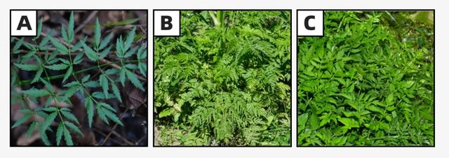 A:毒芹;B:毒参;C:野芹菜