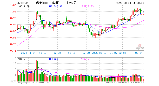 科创100ETF华夏(588800)跌0.10%,半日成交额1.41亿元