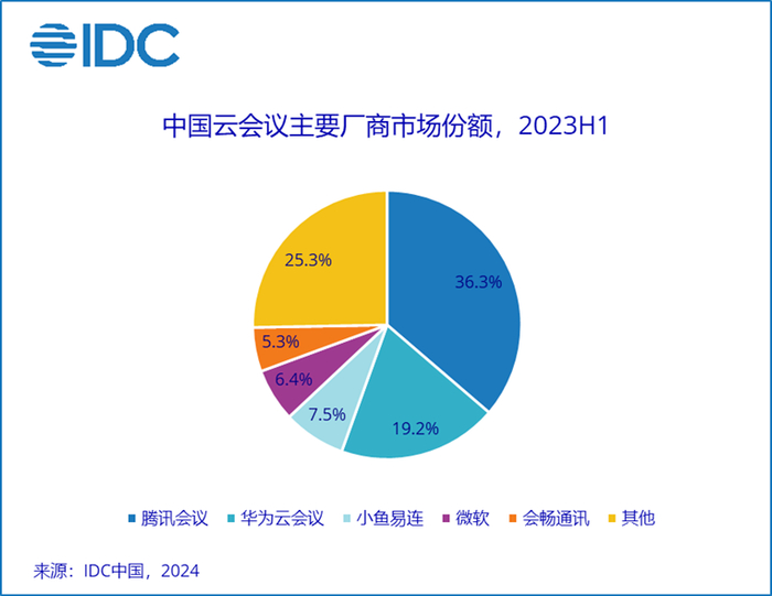 2024年,IDC研究报告显示,腾讯会议作为企业级云会议市场第一,持续引领着云会议市场。