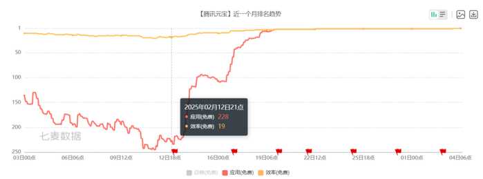 自2月13日腾讯元宝上线了DeepSeek R1模型后,排名就一路跃升。