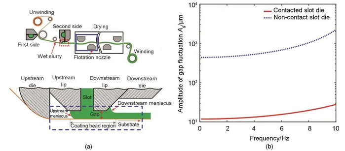 转移式涂布通过两次调整浆料的转移量,可以有效控制浆料转移量和涂层厚度均匀性,而且,通过改变转移辊温度,可以稳定控制浆料在涂布过程中的黏度特性。但是在精度、质量和效率方面很难达到涂布要求,首先在精度方面受制于刮刀或辊的制造精度,其次,浆料暴露在空气中,很难保证浆料不受环境影响,最后涂布间隙需要经过多次调试,依赖于经验法,这种方式耗时,降低涂布效率。