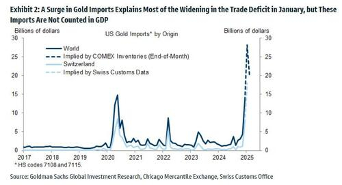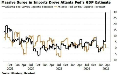 从某种意义上说,黄金进口的暴增——一定程度上源于人们对金融体系日益增长的怀疑,以及对特朗普关税的忧虑,而这反过来又带来另一个意想不到的后果:“吓趴”了美国GDP预测模型……