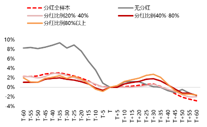 图5:预案公告日后30日,高分红个股有明显超额收益(相对万得全A)