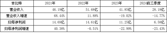 表1:吉比特2021年至2024年前三季度营收和归母净利润情况
