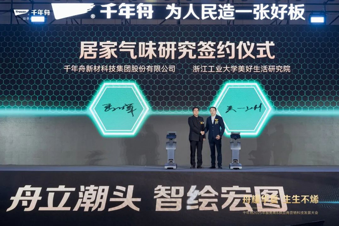 而此次科技大会上,千年舟分别与中国林科院木材工业研究所、广东省科学院微生物研究所、浙江工业大学美好生活研究院在共同推进板材耐老化技术与阻燃技术的深度研发、提升家居环境健康指数、推动居家气味研究领域的发展等方面达成战略合作。