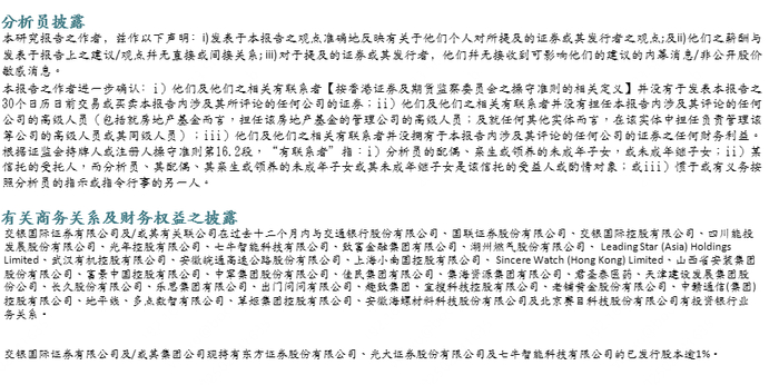 据生态环境部数据,“全国碳排放权交易市场”第一阶段纳入发电行业重点排放单位2,257家,年覆盖二氧化碳排放量超过51亿吨。第二阶段水泥、钢铁及电解铝等行业纳入后,新增重点排放单位约 1,500 家, 覆盖排放量新增加约 30 亿吨,形成总覆盖排放量约81亿吨。按目前碳放权价格约95元/吨,我们估算经扩容后内地碳配额的市值约为7,700亿元。不过,当中由于绝大部份的碳排放权会用于履约,因此我们认为实际流通量约为覆盖量的3-5%(2.43-4.05亿吨),流通市值为231-385亿元左右。