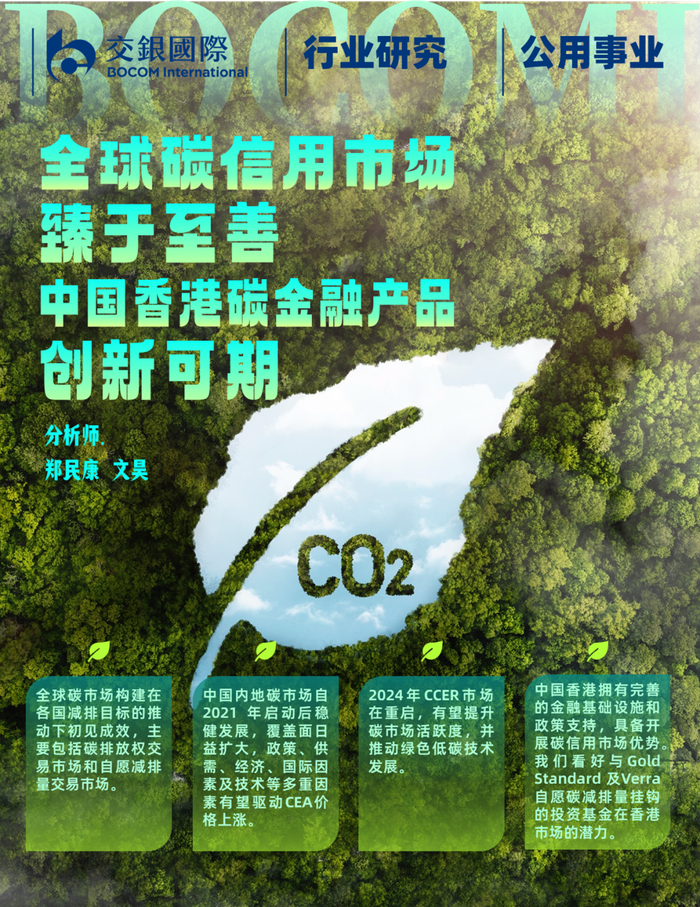 本文节选自交银国际已发布研究报告《全球碳信用市场臻于至善,中国香港碳金融产品创新可期》。
