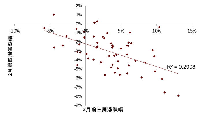 图表4:2月第四周各板块内最大/最小回撤幅度分析