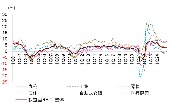 注:NAREIT最新数据截至2024年三季度, 数据频率为季度 资料来源:NAREIT,中金公司研究部