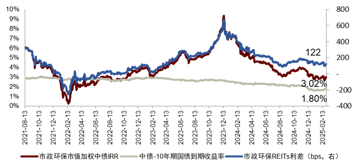 利差分位数略有回升。我们统计2月底各板块与十年期国债利差/利差全历史分位数/利差24年至今分位数分别为122bps/45%/14%(市政环保)、492bps/49%/3%(高速公路)、91bps/29%/6%(能源)、297bps/80%/35%(仓储物流)、264bps/75%/26%(产业园)、134bps/29%/3%(保租房)、237bps/3%/3%(消费)。