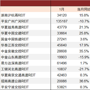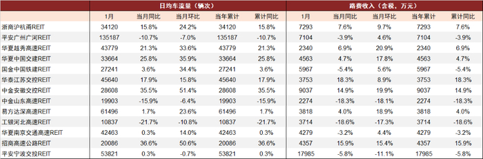 图表1:1月高速公路REITs项目车流量及通行费收入情况
