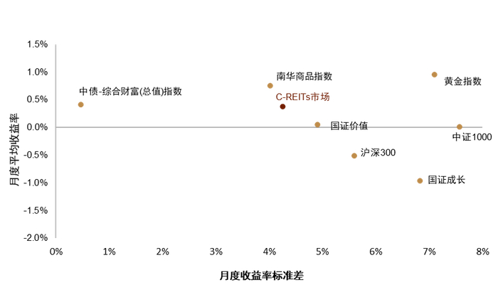 图表15:C-REITs市场及其他大类资产风险收益对比