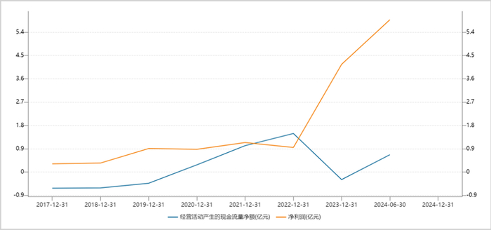 据招股书显示,2017~2019年,公司净利润从0.32亿元增长至0.91亿元,而经营现金流净额持续为负。到2023年,其净利润高达4.16亿元,但经营现金流净额再度转负,为-0.29亿元。