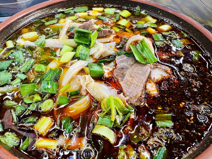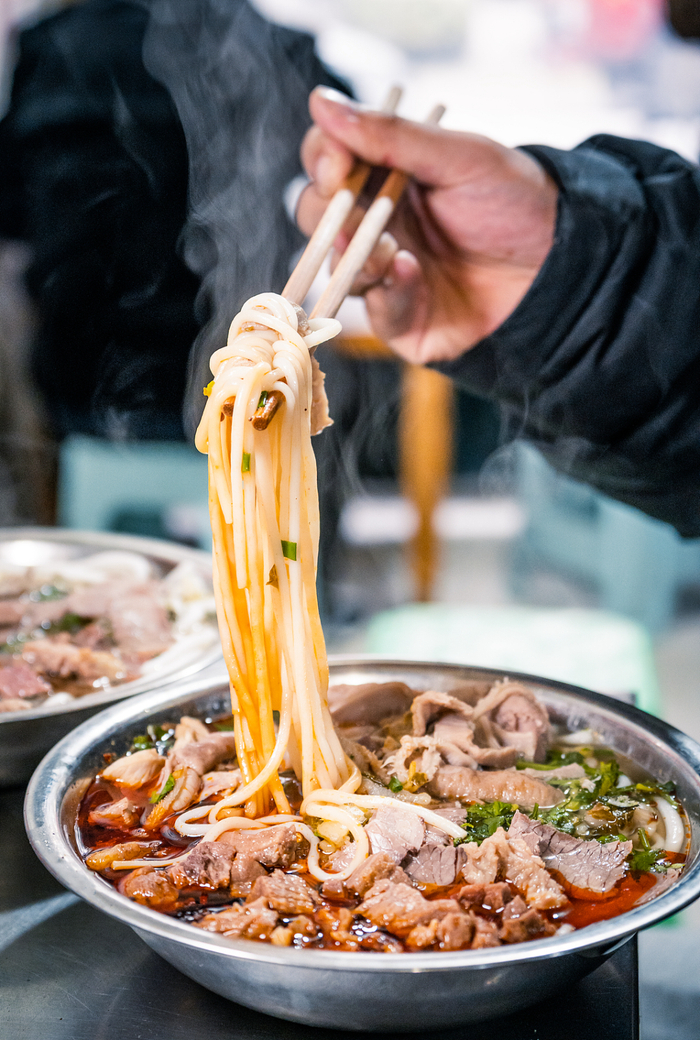 贵阳的大街小巷遍布“花溪牛肉粉”的招牌,它早已成为贵州米粉中最具代表性的品类之一。正宗的贵州牛肉粉讲究“一清二白三红”:汤汁清亮见底,米粉洁白细滑,面上漂着一层红彤彤的辣椒红油。