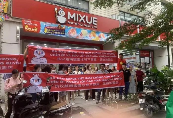 其次,就是下沉市场的日趋饱和。前述已经提到,蜜雪冰城有57%的门店位于三线以下城市,而这些地区客单价不足一线城市的60%,新店盈利周期从12个月延长至18个月。这种情况下,蜜雪冰城关店也成为常事。门店之间的激烈竞争甚至延续到了海外市场,比如有越南加盟商抱怨“门店间距缩至200米”。