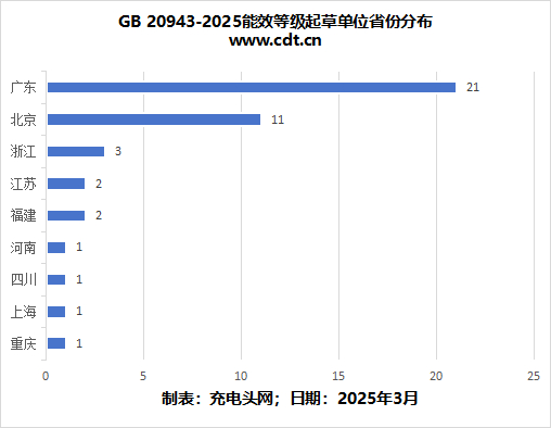 GB 20943-2025能效标准起草单位分布直观反映了中国电子制造产业格局。广东省以21家企业,49%的占比领跑全国,印证了粤港澳大湾区作为全球最大电子制造基地的产业实力,高度集中的产业布局,吸引大量行业相关企业在大湾区设立研发、制造基地。