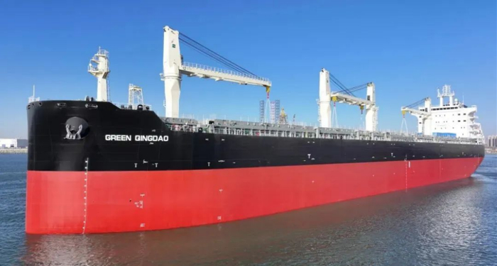 2月19日,大连中远海运重工为交银金租建造的77000吨多用途纸浆船“GREEN QINGDAO”轮命名交付。船舶总长225米、型宽32米、型深21米,设计航速15节。该型船货舱密封性、干燥性良好,可充分保证纸浆货品运输质量和安全。船舶升级 “可折叠商品车专用框架”功能,增加针对新能源车的“一对一”温度监测和预警系统,可以在安全高质量承运进口纸浆的同时,安全运输新能源车,助力新能源车“大批量出海”。该系列船舶污染物氮氧化物排放满足国际公约最高要求(Tier III),振动噪音满足中国船级社最新生效的《绿色生态船舶规范》要求,同时船舶能效设计指数(EEDI)远超国际海事组织第三阶段要求。