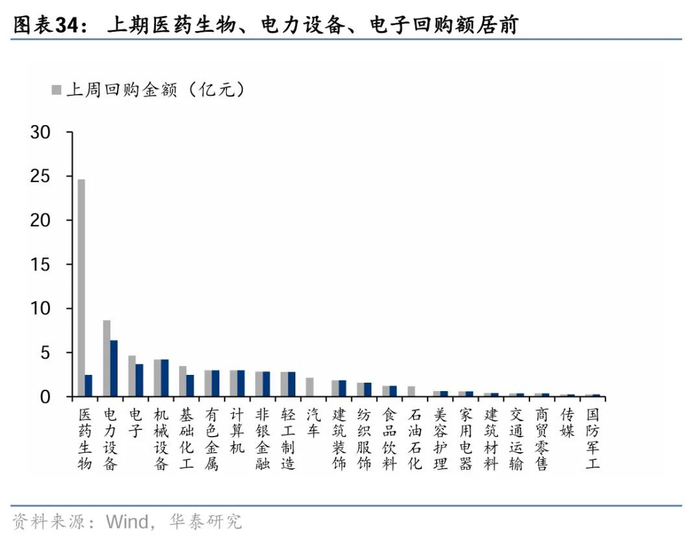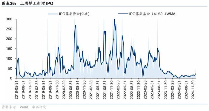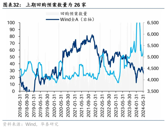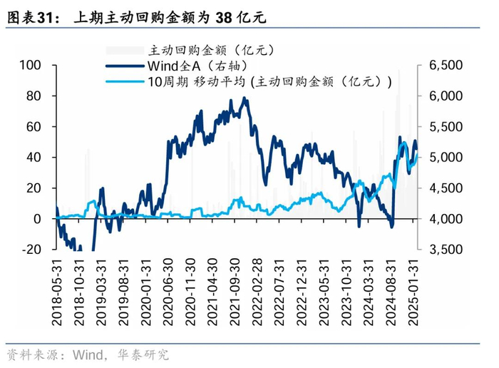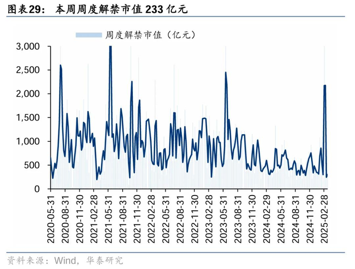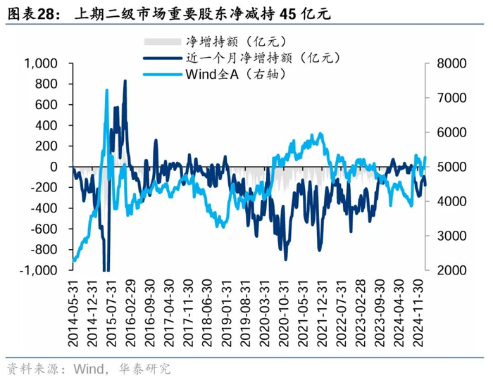 上周二级市场重要股东净减持45亿元,减持力度小幅回落。解禁市值方面,本周解禁市值232.7亿元,供给端压力环比回落。回购方面,上期二级市场股票回购金额68亿元,回购预案金额为11亿元,回购金额环比前期小幅回落。