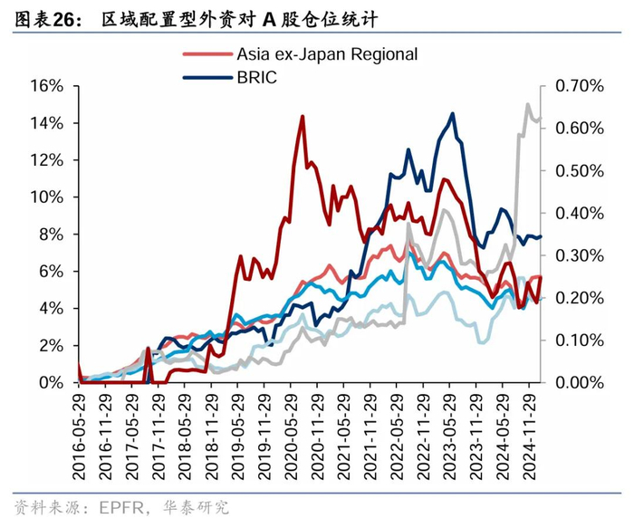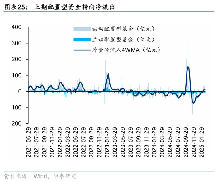 EPFR统计,配置型外资于上期转向净流出12亿元,其中主动配置型外资净流出4.8亿元,被动配置型外资转向净流出7.5亿元;