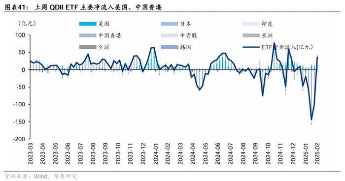 QDII ETF上周净流入36亿元,主要流向中国香港、美国。从溢价率来看,QDII ETF溢价率环比小幅回落。