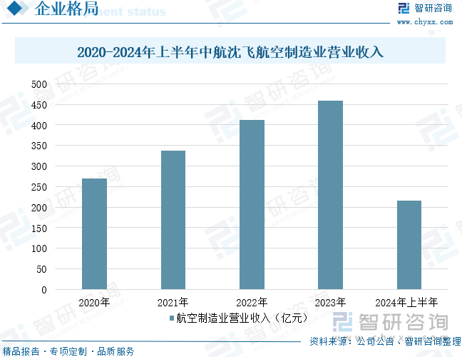 中航沈飞股份有限公司主营业务为航空产品制造,主要产品包括航空防务装备和民用航空产品,核心产品为航空防务装备。航空工业是现代大国博弈、强国争雄的高端平台,是维护国家安全的战略性产业,是国家综合国力的重要组成部分。公司作为“中国歼击机的摇篮”,始终将航空防务装备的研发和制造作为核心业务,在国防建设中担当兴装强军首责,在落实战略中抓牢主责主业,在改革发展中发挥“主机牵头”作用。公司作为航空工业集团骨干企业,面临装备体系、产业体系、能力体系等全域提速升级挑战;作为航空武器装备主承制商,面临高质量、高效益、低成本、可持续的装备发展新要求;作为大型航空军工国企,面临提升产业定位、集约产业资源、优化产业结构、驱动产业管控等一系列新形势。数据显示,2024年上半年,中航沈飞航空制造业营业收入为215.07亿元。