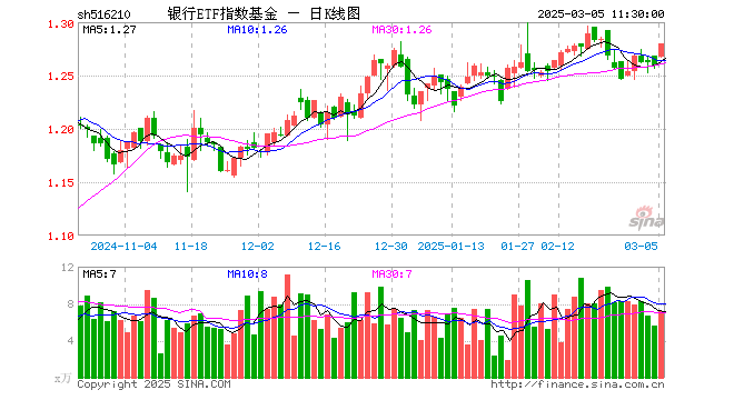 银行ETF指数基金(516210)涨1.67%,半日成交额925.05万元