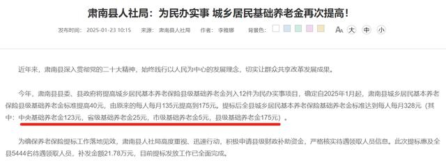 终于确定了,2025年城乡居民基础养老金再提高20元,1.7亿人有福了。