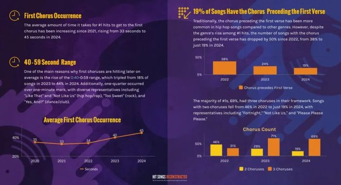 然而,今年Hit Songs Deconstructed的报告却揭示了一些不同的变化:副歌推迟、时间增加。