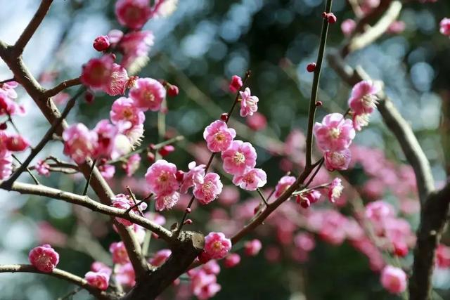 绿博园梅花品种众多,有江梅、玉蝶梅、宫粉梅、绿萼梅等,园内赏梅地点主要在赏花区、内环沿路等