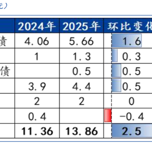 财政政策方面,定调更加积极的财政政策,具体来看:赤字率从3%上调到4%,对应赤字规模(即普通国债+新增地方政府一般债)5.66万亿元,较2024年增加1.6万亿元;超长期特别国债1.3万亿元(其中3000亿元用于支持消费品以旧换新),较2024年增加3000亿元;发行5000亿元特别国债支持国有大行补充资本;地方政府专项债4.4万亿元(即新增地方政府专项债),较2024年增加5000亿元,重点用于投资建设、土地收储和收购存量商品房、消化地方政府拖欠企业账款等,其中企业账款问题还提到“加力推进清理拖欠企业账款工作,强化源头治理和失信惩戒,落实解决拖欠企业账款问题长效机制”。