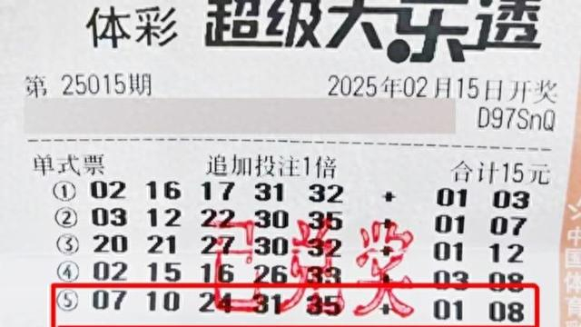 体彩超级大乐透第25015期前区开出号码“07、10、24、31、35”,后区开出号码“01、08”。当期上海浦东购彩者一举揽下1800万,成为蛇年开年后上海首个大乐透头奖幸运儿,这个千万级别的大奖则出自浦东新区浦兴路街道凌河路150 号12263体彩店。