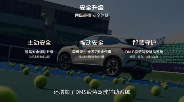 主动安全方面,第二代元PLUS智驾版同样有着出色的AEB功能,能够在100公里每小时的车速下对前方静止车辆以及消失的前车刹停,并且未来将逐步提升到120和140公里每小时。在被动安全方面,第二代元PLUS智驾版增加了前排远端安全气囊,显著增强了侧碰翻滚情况下的乘员保护。此外,还新增了DMS疲劳驾驶辅助系统,该系统通过监测驾驶员的面部特征和眼部信号来判断驾驶者的疲劳程度和注意力状态,并提供预警提示,从而时刻守护用户的出行安全。