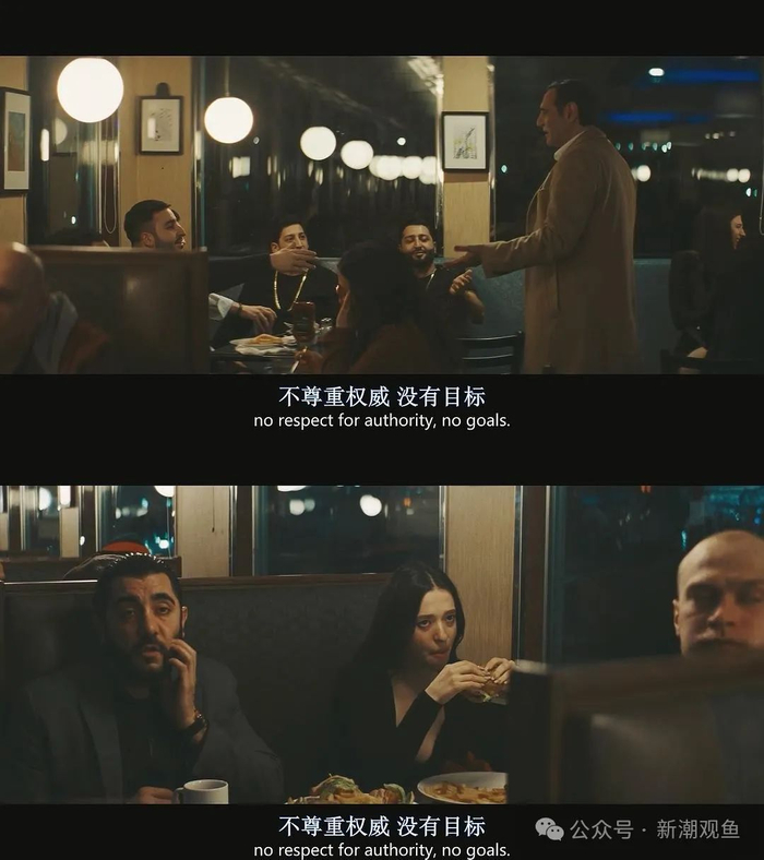 这段很聒噪的高密度台词和脱线又生活化的黑色幽默塑造有几分昆汀剧本的神韵。