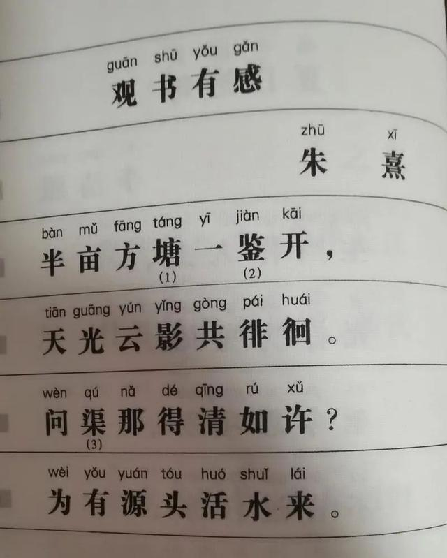 朱熹是南宋人,他生活的年代还没有“哪”字。第三句中的“那”其实就是疑问代词的意思,我们现在背诗的时候,都会读成nǎ。