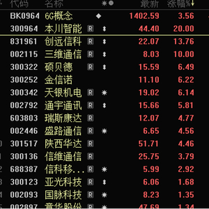 对比以往政府工作报告,6G概念为首次进入。受该消息影响,3月5日,6G概念大幅上涨,排在概念涨幅榜第一,武汉凡谷本川智能、三维通信、纵横通信等涨停,硕贝德、金信诺、天银机电等跟涨。