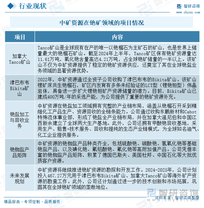研判2025!中国铯矿行业资源分布、产量及重点企业分析:全球铯矿资源稀缺,中矿资源掌控全球八成以上矿产[图]