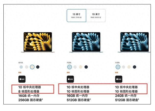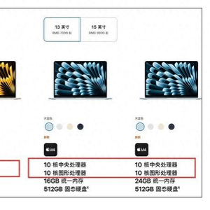 值得注意的是,在处理器配置上,只有13英寸16+256G版本的MacBook Air采用了10核中央处理器和8核图形处理器,其他版本则均配备了10核中央处理器+10核图形处理器,提供了更强大的性能支持。