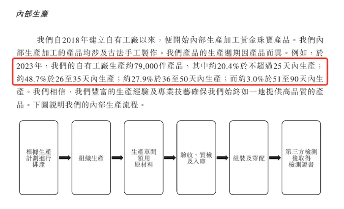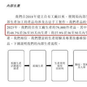 而老铺自有工厂的产品约有一半是在26天至35天内生产。此外,老铺还有相当比例的产品是外包生产。