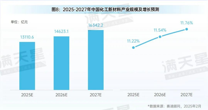 图8:2025-2027年中国化工新材料产业规模及增长预测